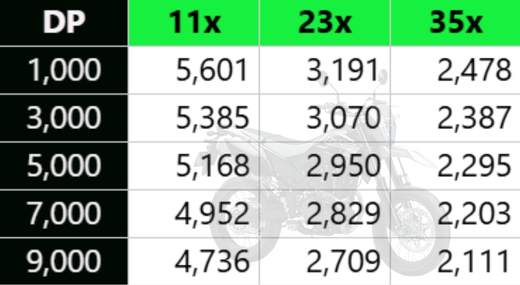 Berikut adalah tabel simulasi kridit Kawasaki D-Tracker 150 SE.
