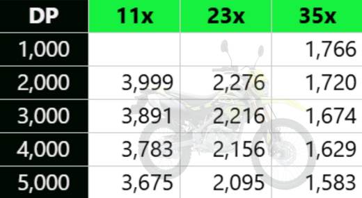 mas mau tanya, klo untuk kawasaki klx bf se dp 5 juta untuk 34 bulan bisa mas?